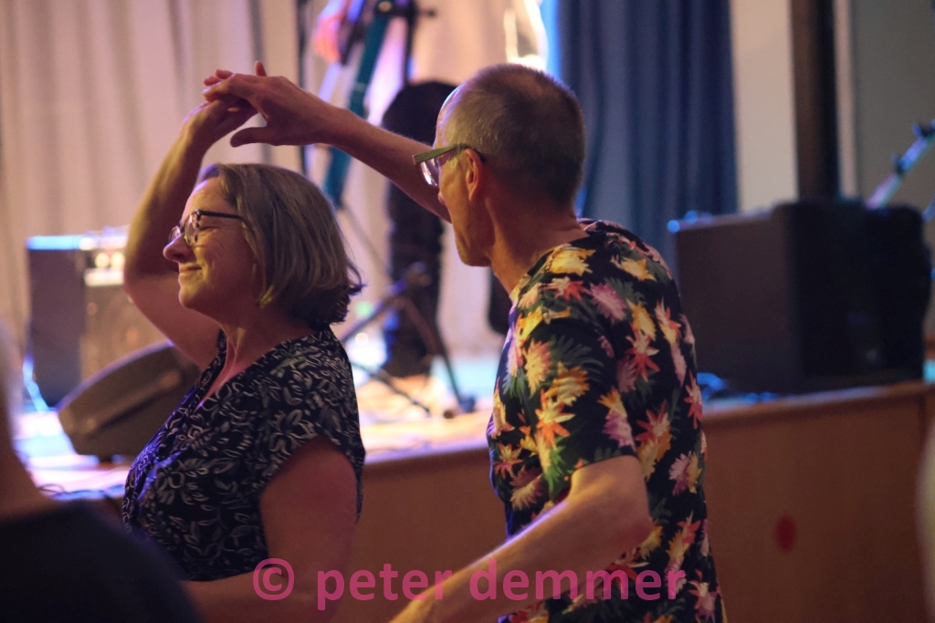 Man möchte es eine traditionelle Tanzveranstaltung nennen – und dies nur im positivsten Sinne. Es ist bestuhlt, vor der Bühne ausreichend Platz, um sich zu bewegen. Oder eben auch zu tanzen. Mehr als hundert Menschen haben ihren Weg heute in die Halle gefunden. „Es hätten ruhig noch ein paar mehr sein können“, hört man aus den Reihen der Organisatorinnen und Organisatoren. „Aber bei all dem, was heute in der Gegend los ist, müssten sich die Leute ja förmlich zerreißen.“ Und dann ist ja auch noch der wahrscheinlich letzte Grillwetterabend des Jahres.