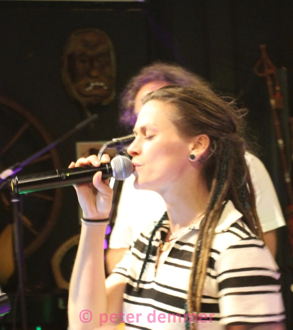 Während sie in der Pause ein Weißweinschorle bestellt, mit dem sie im weiteren Konzertverlauf immer wieder artistisch jonglieren wird, berichtet die Sängerin, dass die Band mehr als nur ein musikalischer Zusammenschluss sei: „Wir sind alle dicke miteinander befreundet. Wie eine Familie. Und das schon so viele Jahre.“