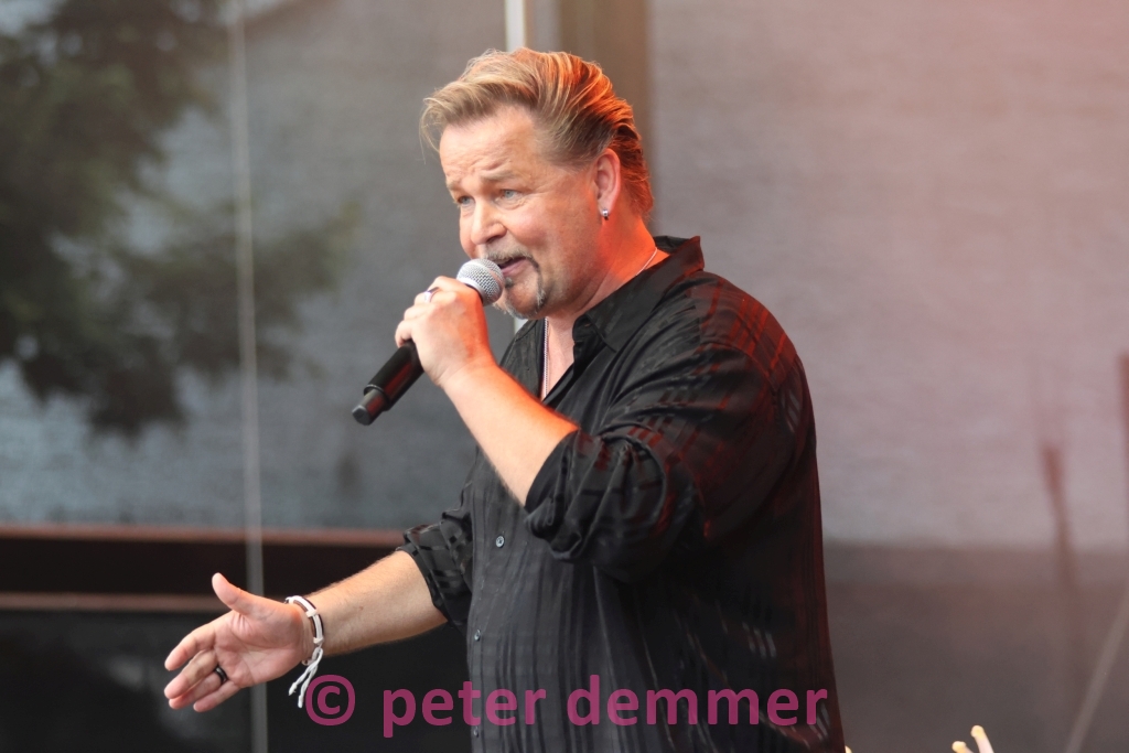 Als Nächster schubst Frank Cordes die Menschen in seinen Schlagerbus – Fenster runter, Kühltasche auf. Er ist heute alleine: ohne Band. Man merkt ihm seine Bühnenerfahrung sofort an. Er redet. Er singt. Er erzählt Geschichten. Von damals mit den „Schlagerpiloten“ und wie er Drafi Deutscher kennenlernte. Aus dieser Zeit stammt das Stück „You want love“. Ein Bühnentechniker: „Es gibt drei Arten von Künstlern: die eher doofen, die netten und die, mit denen man gerne mal grillen möchte. Mit dem Frank würde ich jedes Steak teilen.“ Vor zehn Jahren beschloss Cordes – ob der tollen Menschen und der Natur – seinen Lebensmittelpunkt auf die Schwäbische Alb zu verlagern. Ein Nachbar – einer von uns. Seitdem wohnt er in Meßstetten. Ganz ohne Gehabe. Aus der Ferne wirkt er wie ein süddeutscher Brad Pitt. Auch er spielt zwei Sets. „Jetzt erst recht“ und auch „Mary Jane“ erklingen. Irgendwann steht er einfach zwischen den Menschen und singt weiter – dort ist sein Platz, dort gehört er hin. Ein schmachtendes „Sierra Madre“ und zum Abschluss ein tränenschönes „Unchained Melody“ von den „Righteous Brothers“. Diese Texte: In Schlagern geht’s nie um unbezahlte Nebenkostenabrechnungen.
