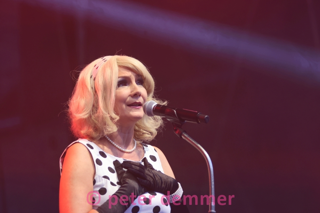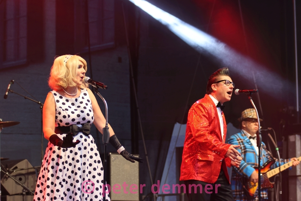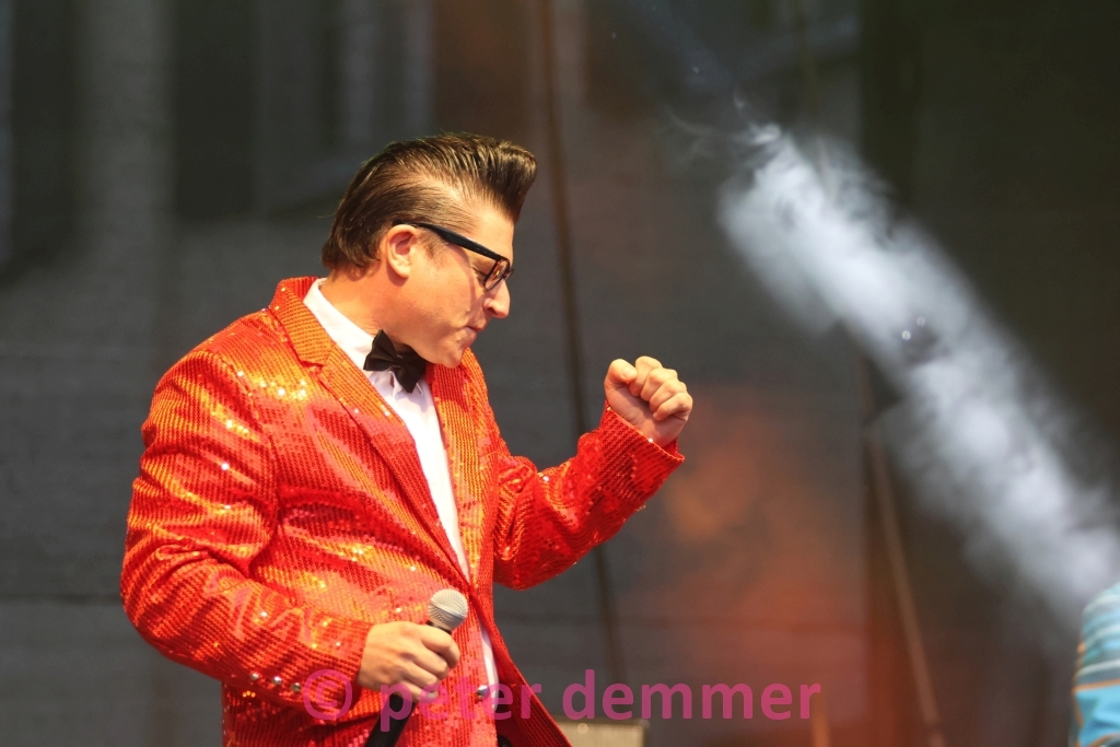 Und endlich beginnt es: das Wirtschaftswunder in Balingen. Genauer gesagt: der heutige Headliner Wirtschaftswunder startet mit dem Stück „Schöner fremder Mann“ im Original von der unvergesslichen Connie Francis. Und schubsdiewubs hat das Sextett das Balinger Publikum bereits ab dem ersten Ton komplett auf seiner Seite. Vorne die Sängerin Helga und der ebenfalls stimmgewaltige Oswald. Letzterer meint verwegen, er könne tanzen. Am Schlagzeug Dr. Sputnik, an der Gitarre der unglaubliche Eddie Schillinger, Jens von Eden an der elektrischen Orgel und schlussendlich Hans Albern am Bass. Aus dem Stuttgarter Raum kommen sie, und: die können echt was. Handwerklich auf höchstem Niveau, über 60 TV-Auftritte absolviert, katapultieren sie das Publikum direkt in das Nostalgie-Karussell, beginnend mit „Itzi Bitzi Strandbikini“ über „Drei kleine Italiener“ von Conny Froboess bis hin zur jungen Gitte, die einen „Cowboy als Mann“ will. Sie füllen ihr 100-Minuten-Set mit Schlagerklassikern der 50er- und 60er-Jahre. Und plötzlich steht Gitarrist Schillinger, einem Eddie Van Halen gleich, mitten im Publikum auf einer Bank und spielt ein Rock’n’Roll-Solo im besten Stil von Duane Eddy. Die Falten in Schillingers Gesicht sagen: „Er ist halt keine 39 mehr.“ Seine Finger auf dem Gitarrenbrett und sein Hüftschwung widersprechen: „Anfang 20, keinen Tag älter.“
