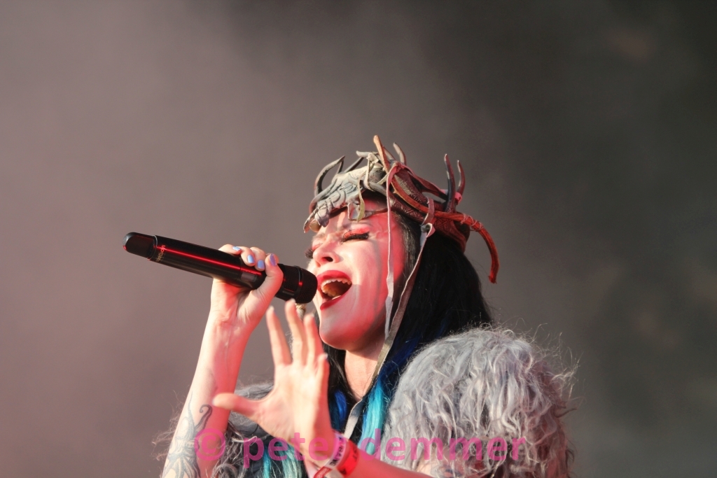 Die „Burning Witches“ kommen unter Horrorfilm-Beschwörungen aus den Lautsprechern auf die Bühne. Viel Popo, sagen die Kritiker. Viel Punch, sage ich. Über ein solides Rhythmuskonstrukt schaffen sie es, auch musikalisch zu begeistern. Die Bühnentechniker haben im Hintergrund zwei kleine „Hexenhäusle“ aufgebaut. Sehr witzig – schön zu sehen, dass sich die Szene selbst auf die Schippe nehmen kann. Hoffe ich zumindest.