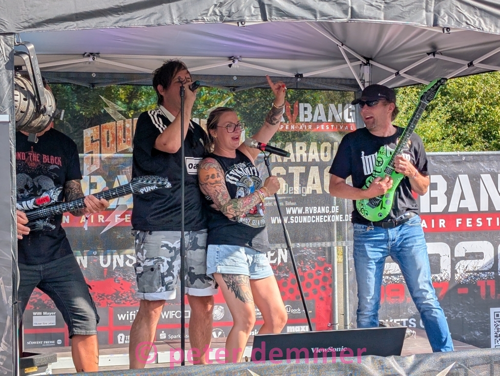 Am Donnerstag startete das zweite „RVBang“-Festival auf dem Balinger Messegelände – zunächst im Biergarten und mit einigen Bands in der Messehalle. Freitag und Samstag öffnete dann die Open-Air-Bühne – bei bestem Wetter. Nebenan: ein festivaleigener Campingplatz für Dauerfeiernde. Dazu ein „Fantastisches Metal-Spiele-Wunderland“ rund ums Thema Heavy Metal: Karaoke, Spontan-Tätowierungen, Kuttenwettbewerb, Tischfußball oder der Erwerb von Metal-Zubehör in Form von Ringen, Armbändern, Aufnähern und Shirts – quasi als Bonus obendrauf. Und Schupfnudeln.